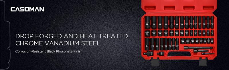CASOMAN 3/8" Drive Impact Socket Set, SAE and Metric, 5/16-Inch to 3/4-Inch & 8-22 mm, 6 Point, CR-V, 49 Piece Set
