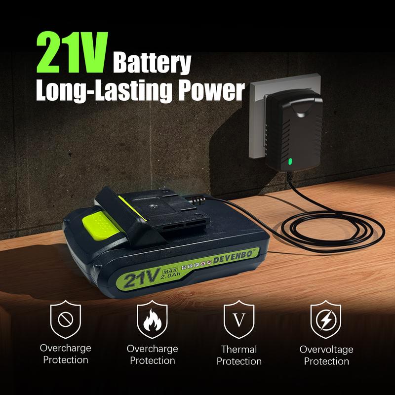 【Battery Drill Cordless】 Includes a powerful 21V 1.5AH lithium-ion battery with charger for extended use and quick recharge.