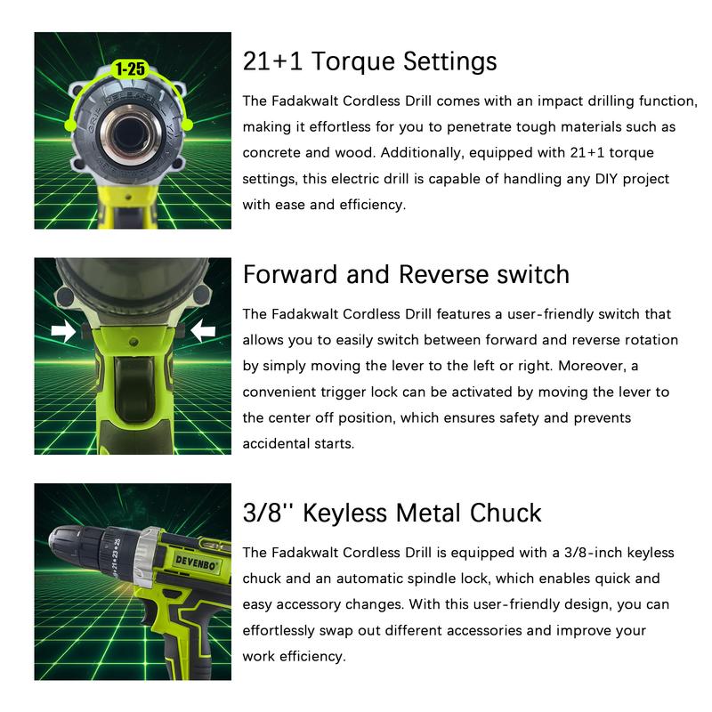 【Power Drill Set】 Versatile power drill for wood, metal,ceramics, and plastic drilling - perfect for home improvement projects, DlY projects, and Professional Use.