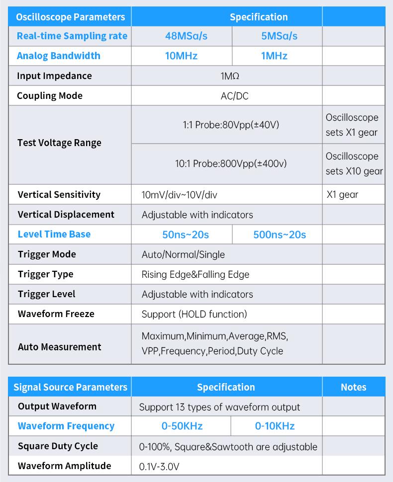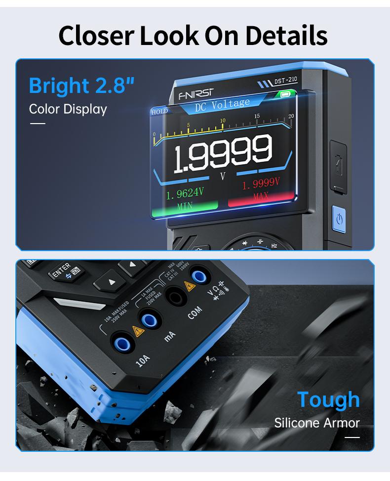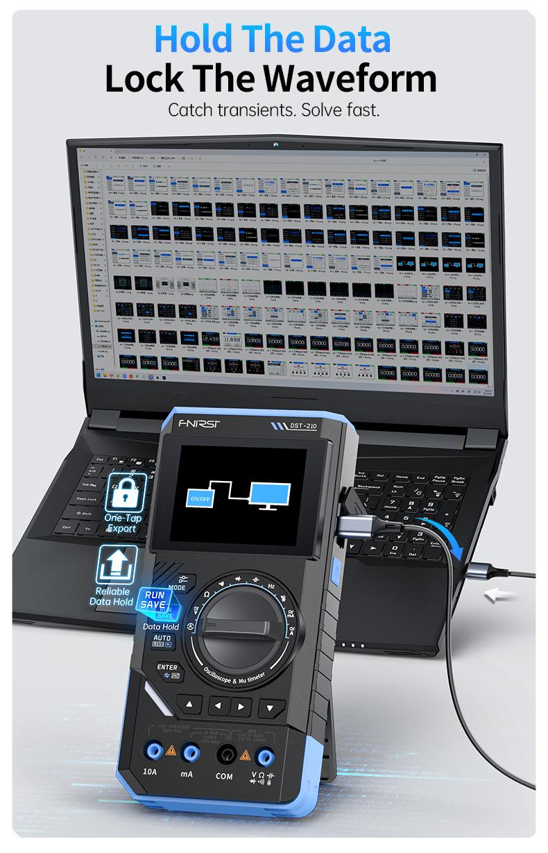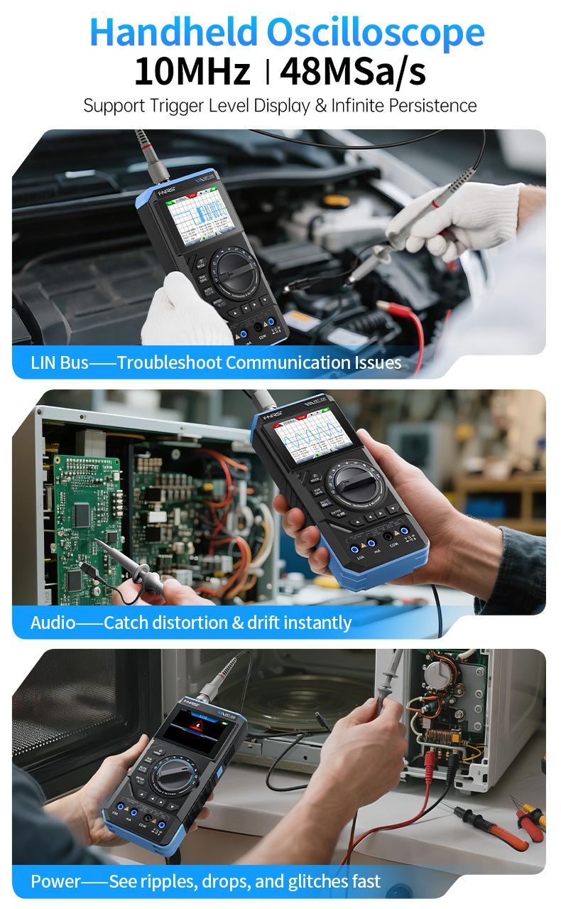 ✦【Oscilloscope Multimeter】FNIRSI DST-210 handheld oscilloscope 10 MHz bandwidth 48 MSa/s sampling rate, 400 V max voltage. 10 mV/div–10 V/div Vertical sensitivity. Supports waveform image save/export for efficient electronic circuit diagnosis
