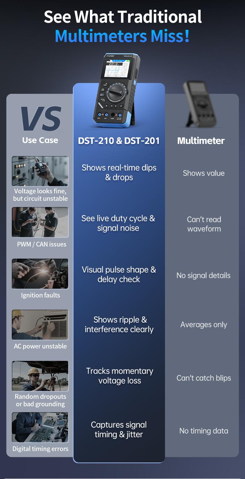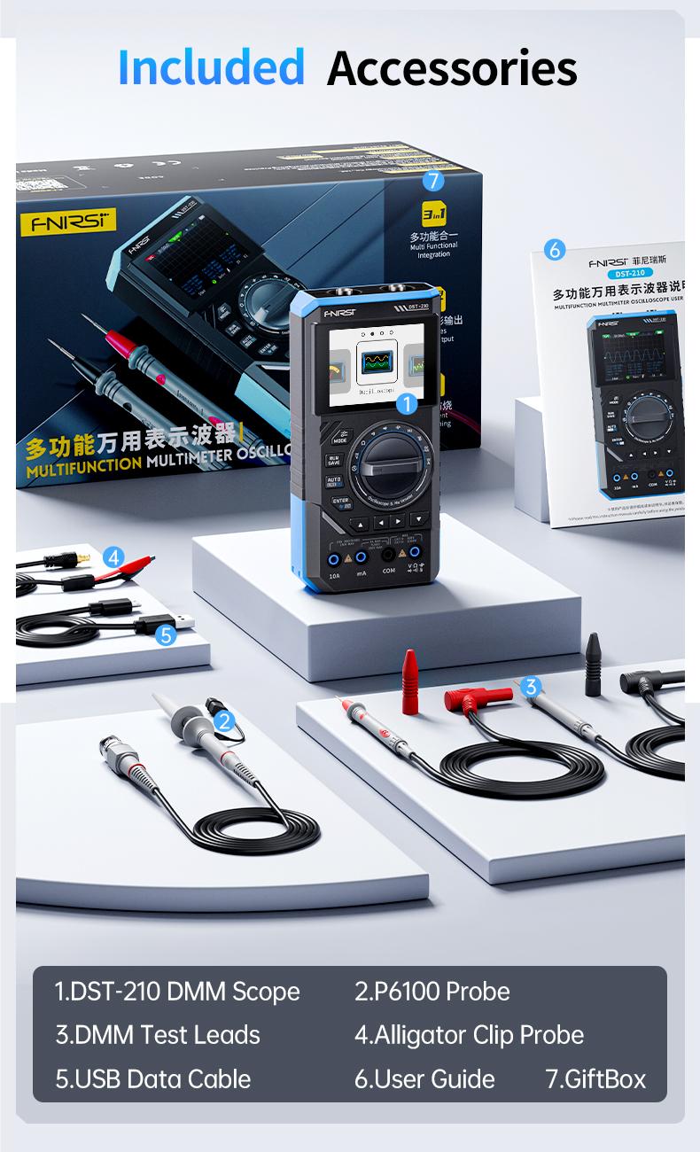 FNIRSI DST-210 and DST-201 3IN1 Digital Multimeter Oscilloscope Signal Source 19999 Counts 10Mhz Multifunctional Portable Electrician Tools