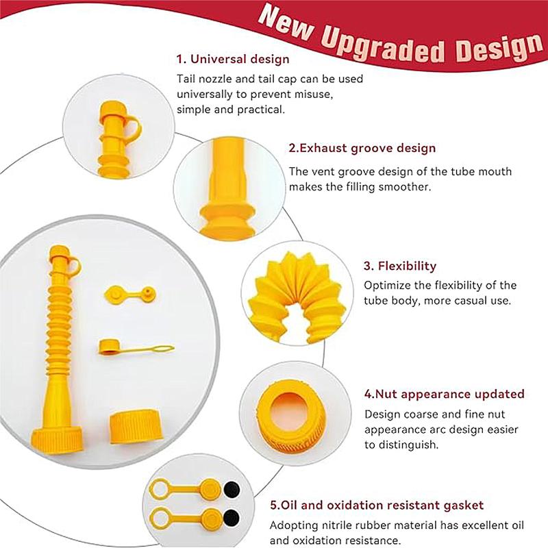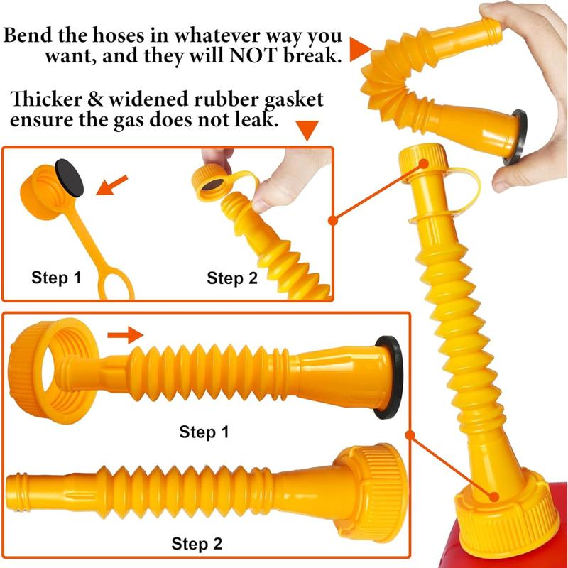 - High-quality materials, These gas can nozzle replacement parts are made of high-quality HDPE materials, In use you can bend freely without breaking. Thicker and widened rubber gaskets, Can better fit the bottle cap, Prevent liquid leakage when refueling.