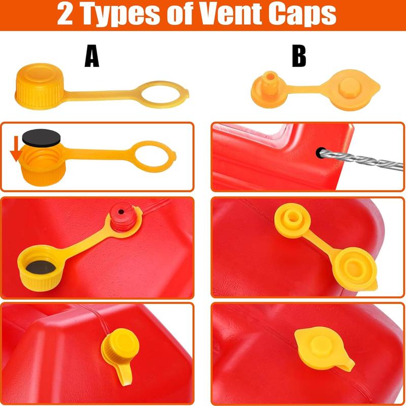 - Can cover more oil cans, We offer two types of gas can vent caps, (Gas Can Vent Caps-A) is used for oil cans without a vent at the end of the oil can, All you need is a simple drilling and installation and ready to use.(Gas Can Vent Caps-B) is used for another oil can with a vent cap at the tail, Can replace old vent caps.