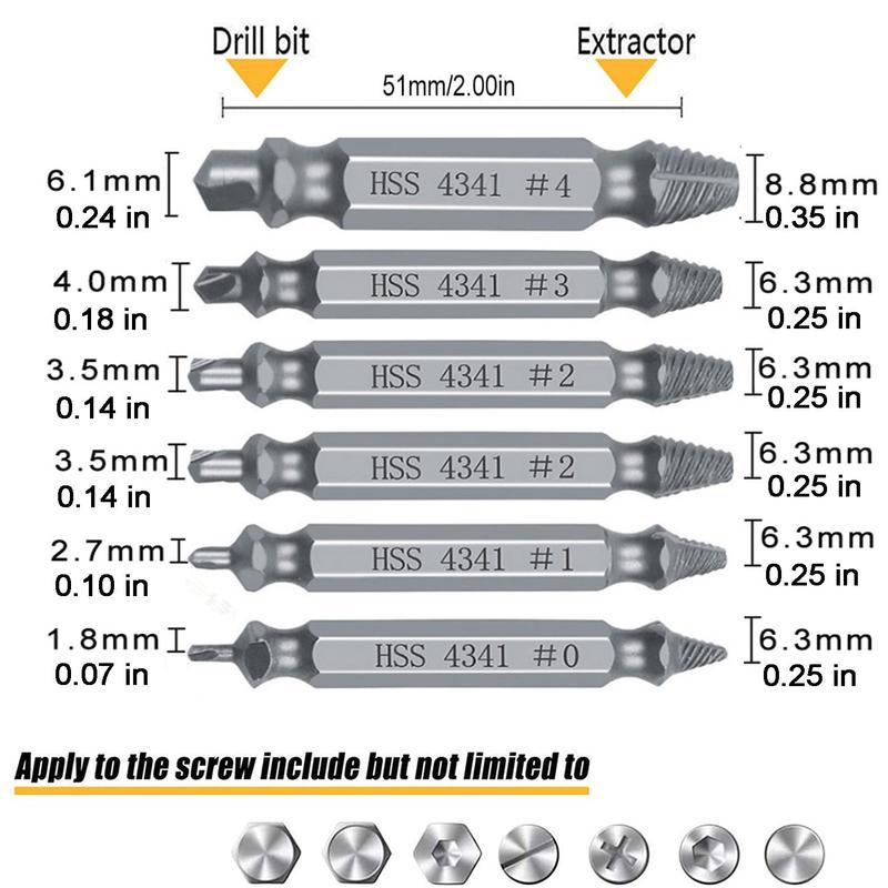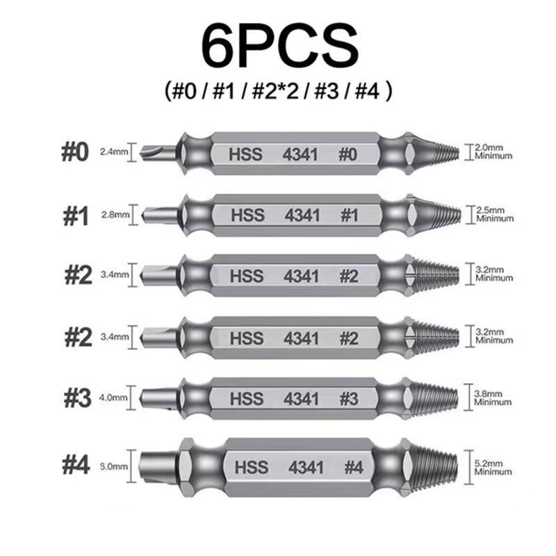 Stripped Broken Screw Remover,6 Counts Set Easy Out Bolt Extractor, Damaged Screw Extractor Set,Double Head Extraction Design Extractor Head,Household Repair Tools, Power Tool Accessories, Screwdriver Bit Clip.